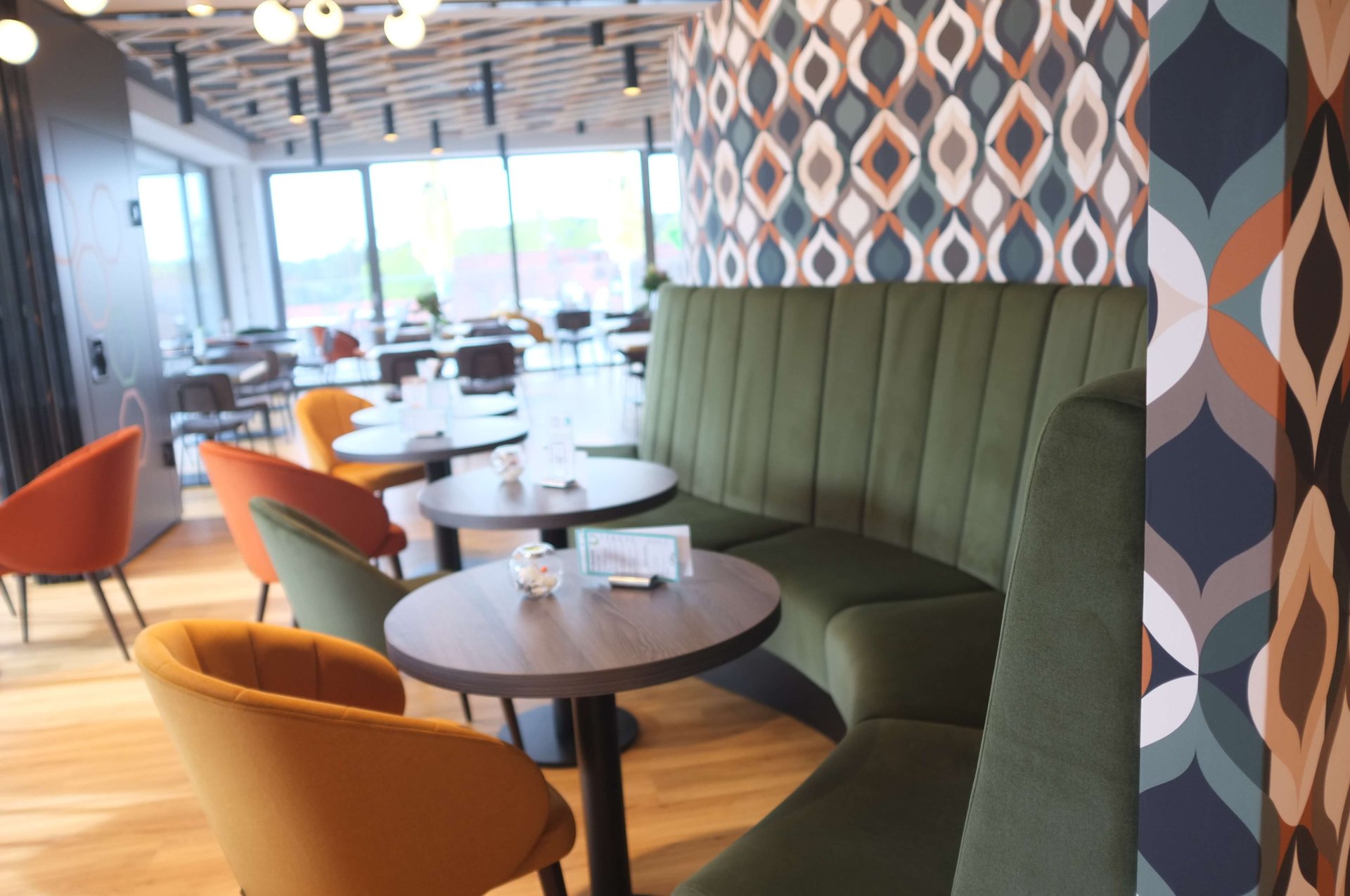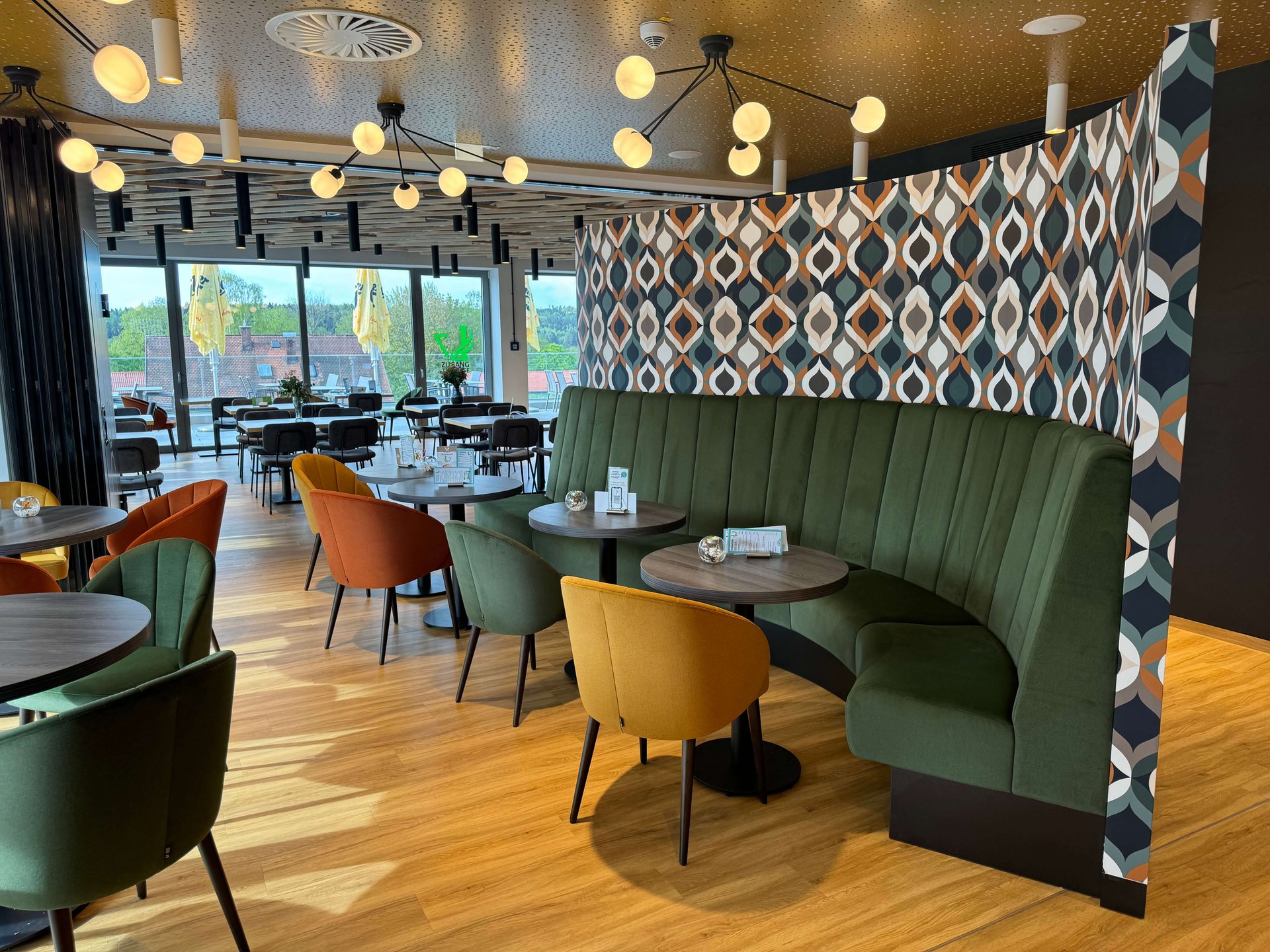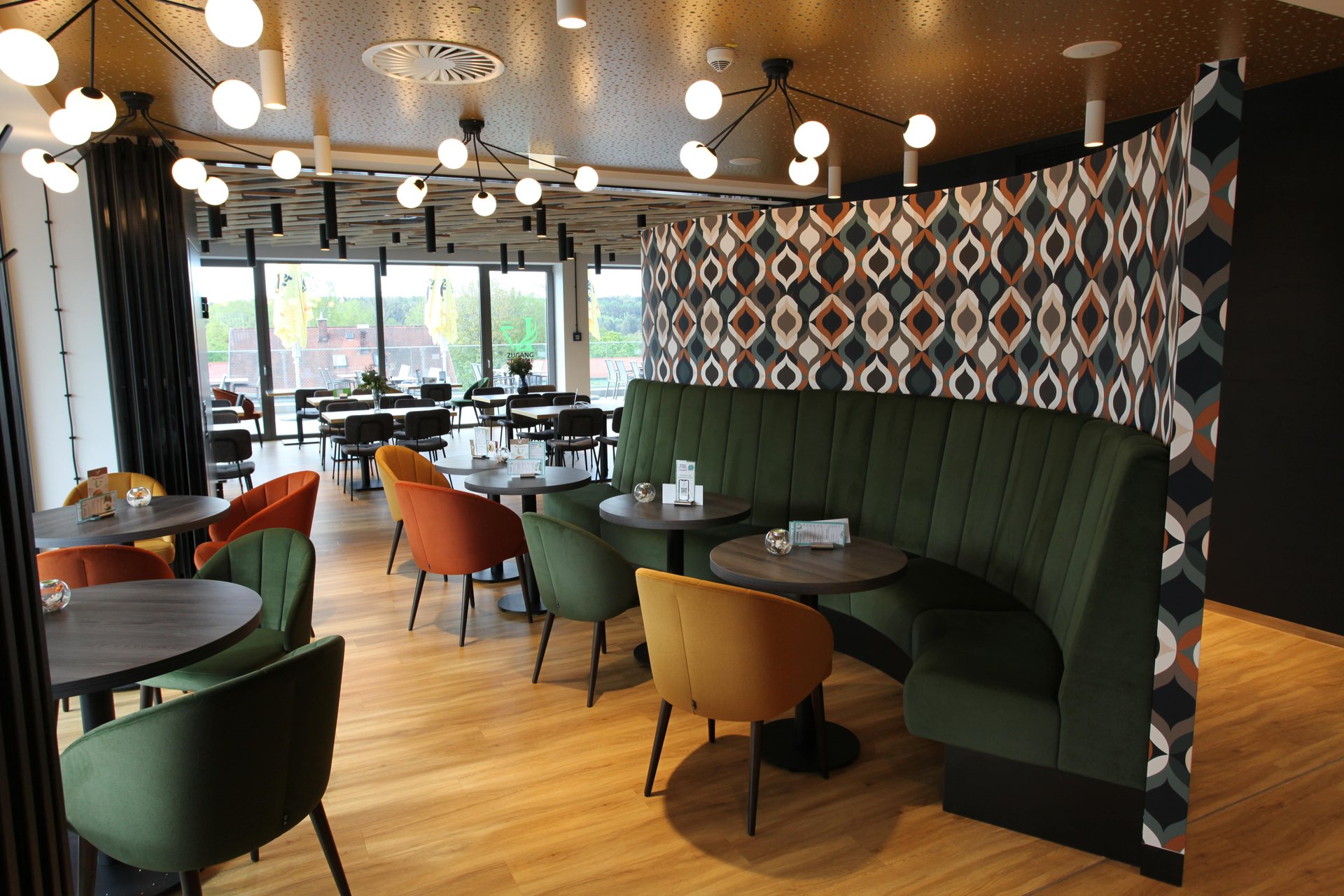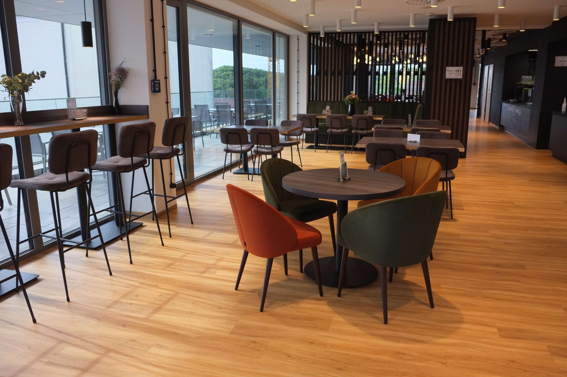 Einzigartige Erlebnisgastronomie bietet das Lagarde 7 im Haus der Gesundheit in Parsberg. Und was könnt da besser passen, als eine Innenausstattung mit bunt-bequemen Möbeln, die die gesund-frische kulinarische Küche unterstützt? So wird der Besuch zu einem Genußtreffpunkt für Freunde und Familie.