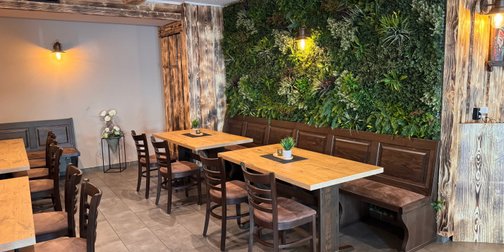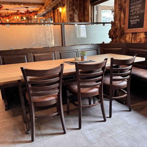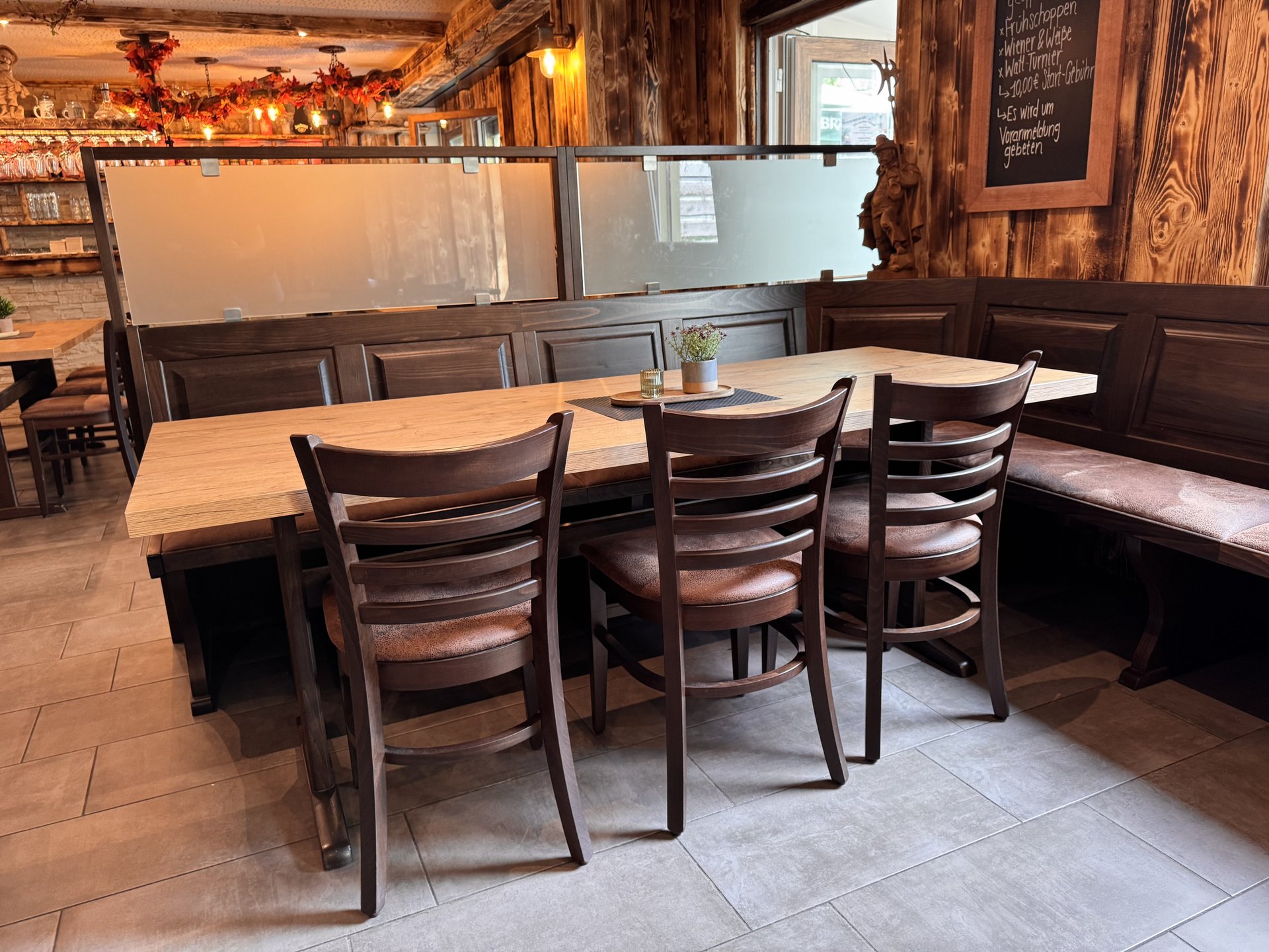 In rustikalem Ambiente begrüßen die Inhaber des Sporttreffs Ingolstadt ihre Gäste. Passend dazu in Holzoptik gehalten sind die Stühle und Tische. Für maximalen Sitzkomfort sind Bänke und Stühle gepolstert.