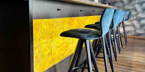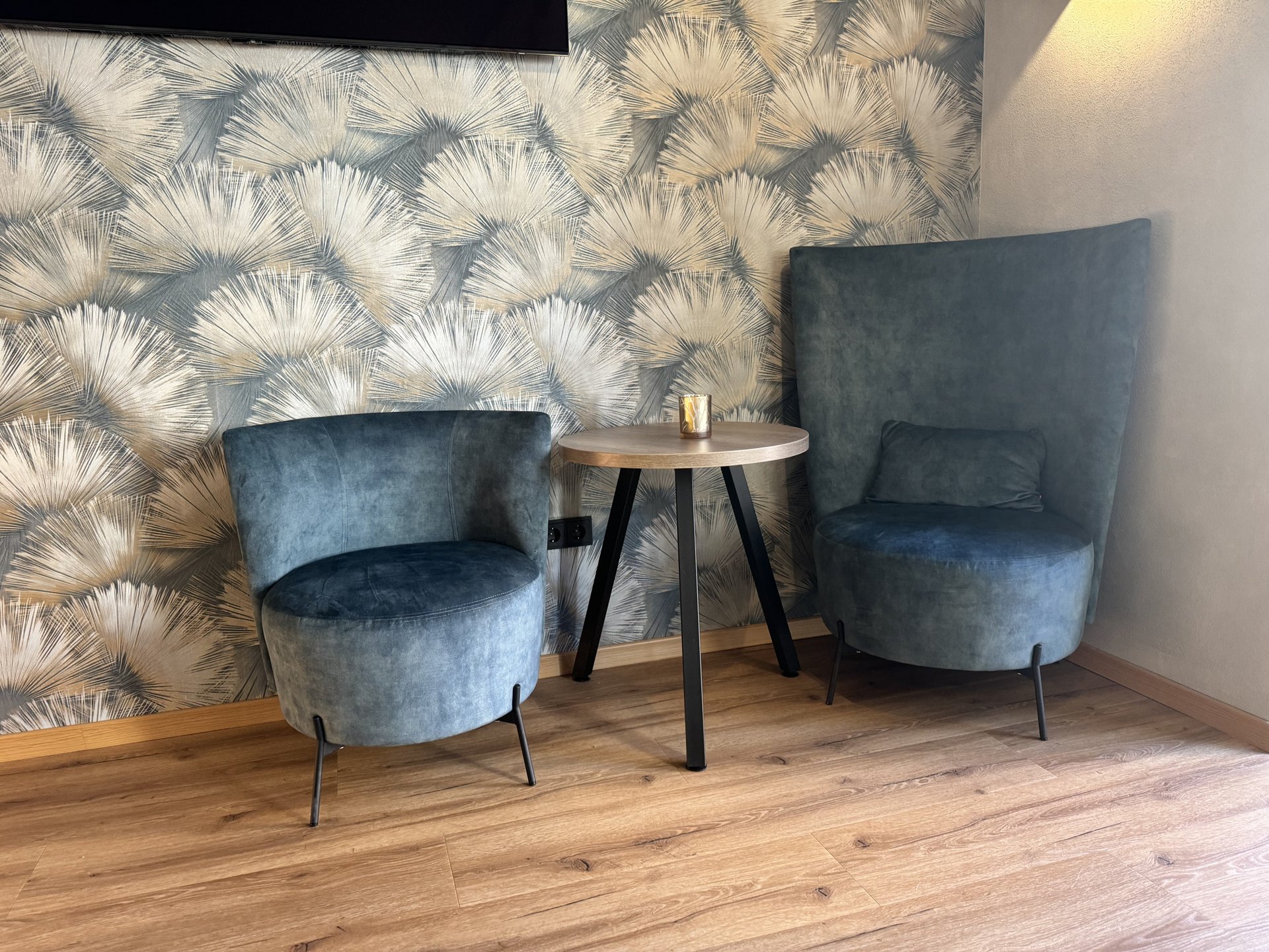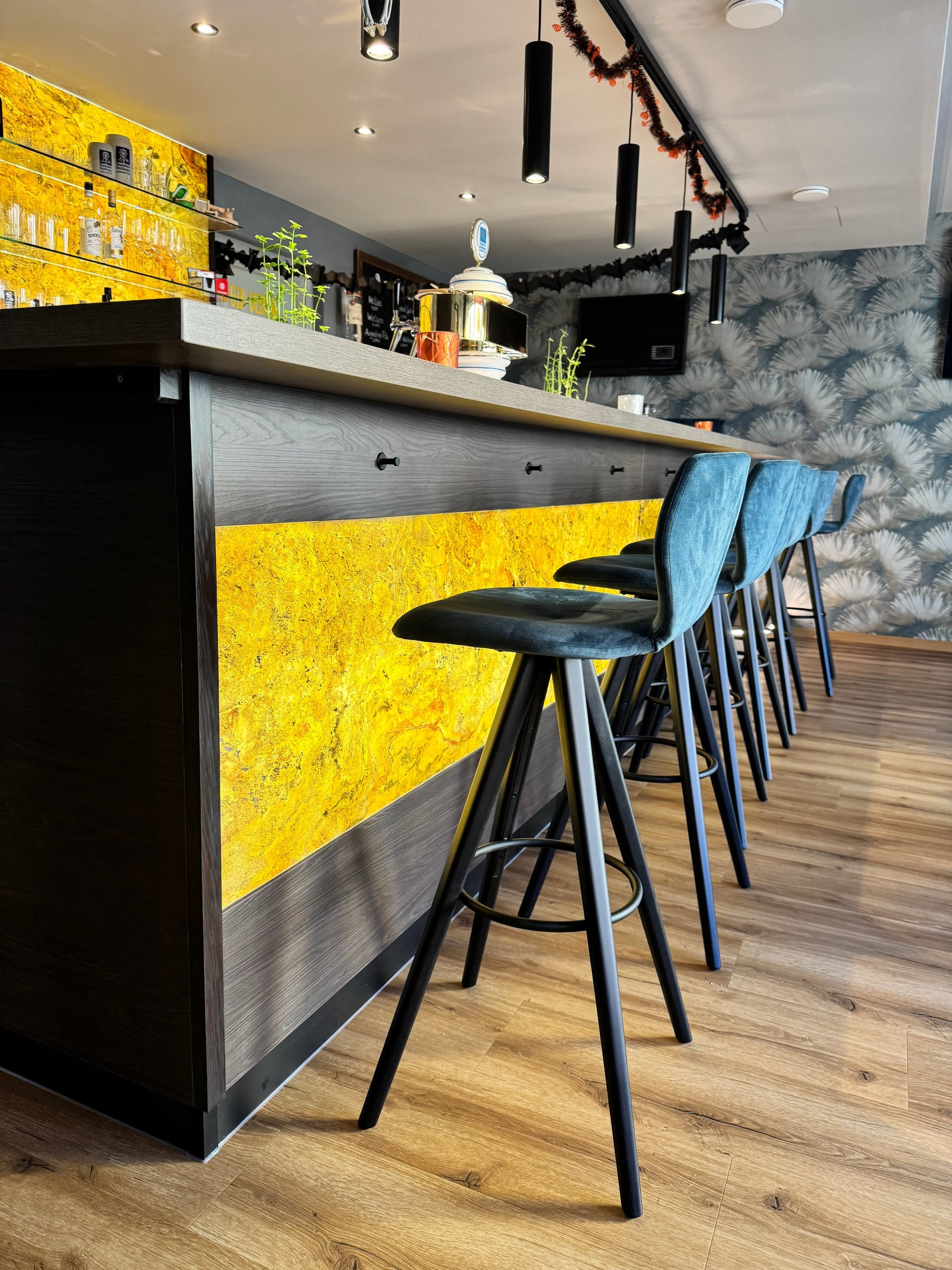 Die Bar des Hotels Straussen Harburg besticht durch gemütliche Sitzmöglichkeiten – an der Bar und im Raum. Der individuelle Charme wird durch die Sessel unterstrichen.