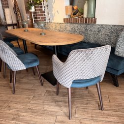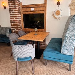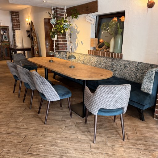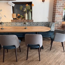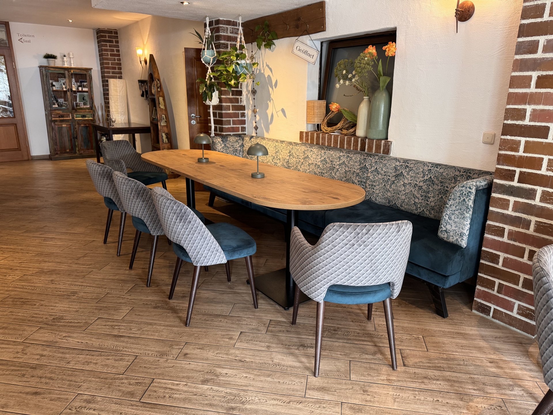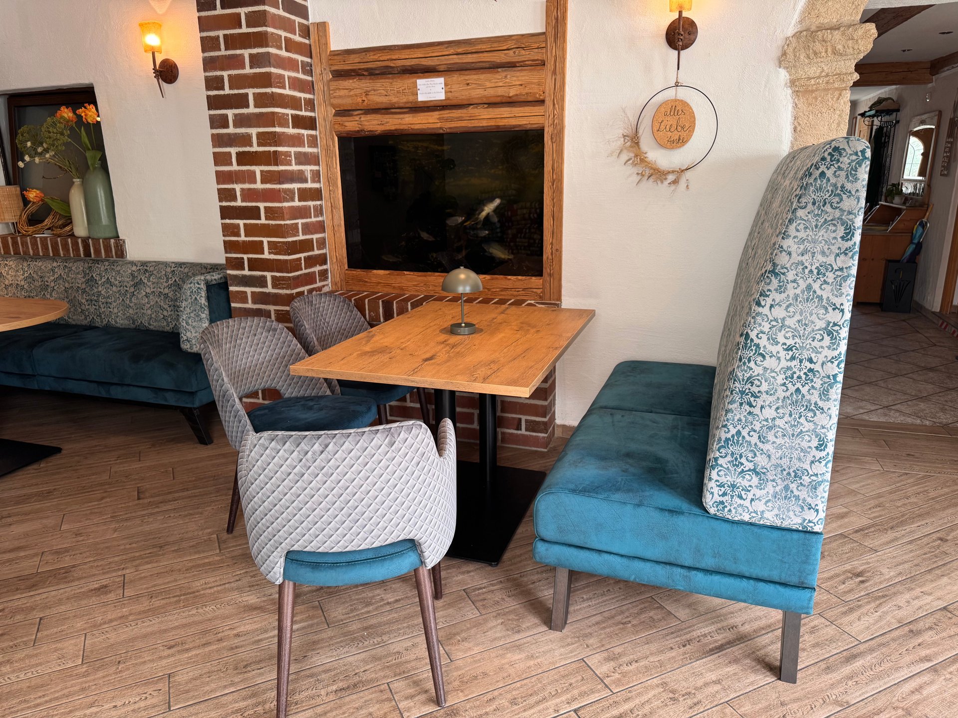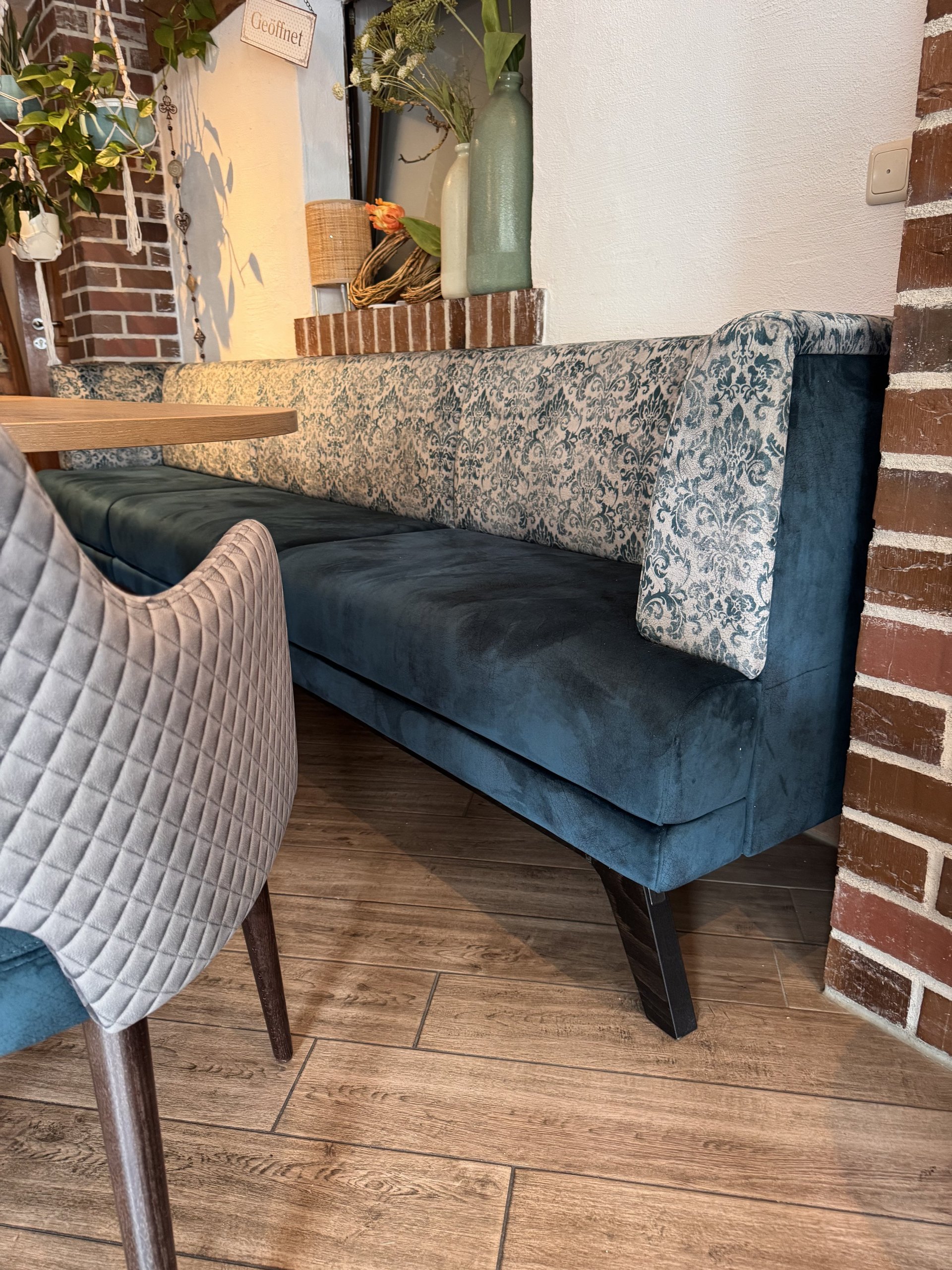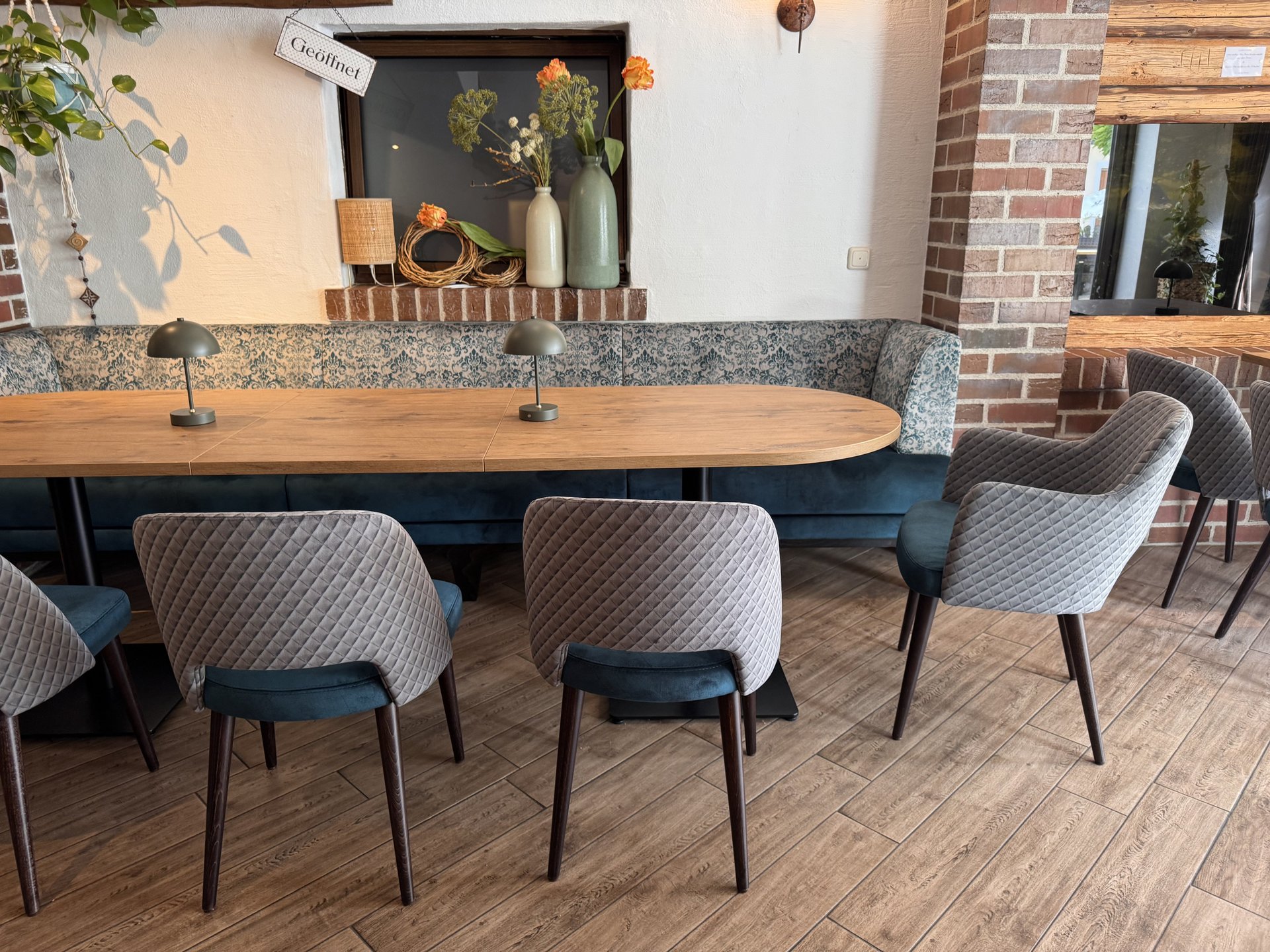 Maximaler Sitzkomfort meets individuelles Design. Im Gasthaus Zur Goldenen Sonne in Maihingen genießen die Gäste die hochwertige Polsterung auch an der Rückenlehne.