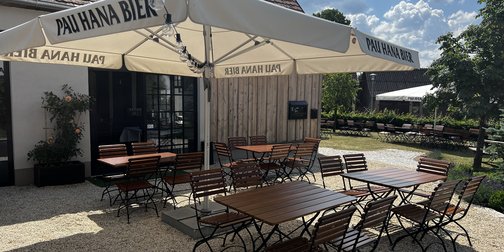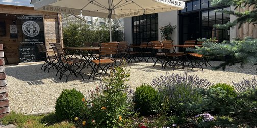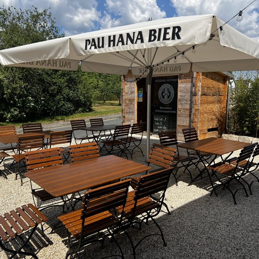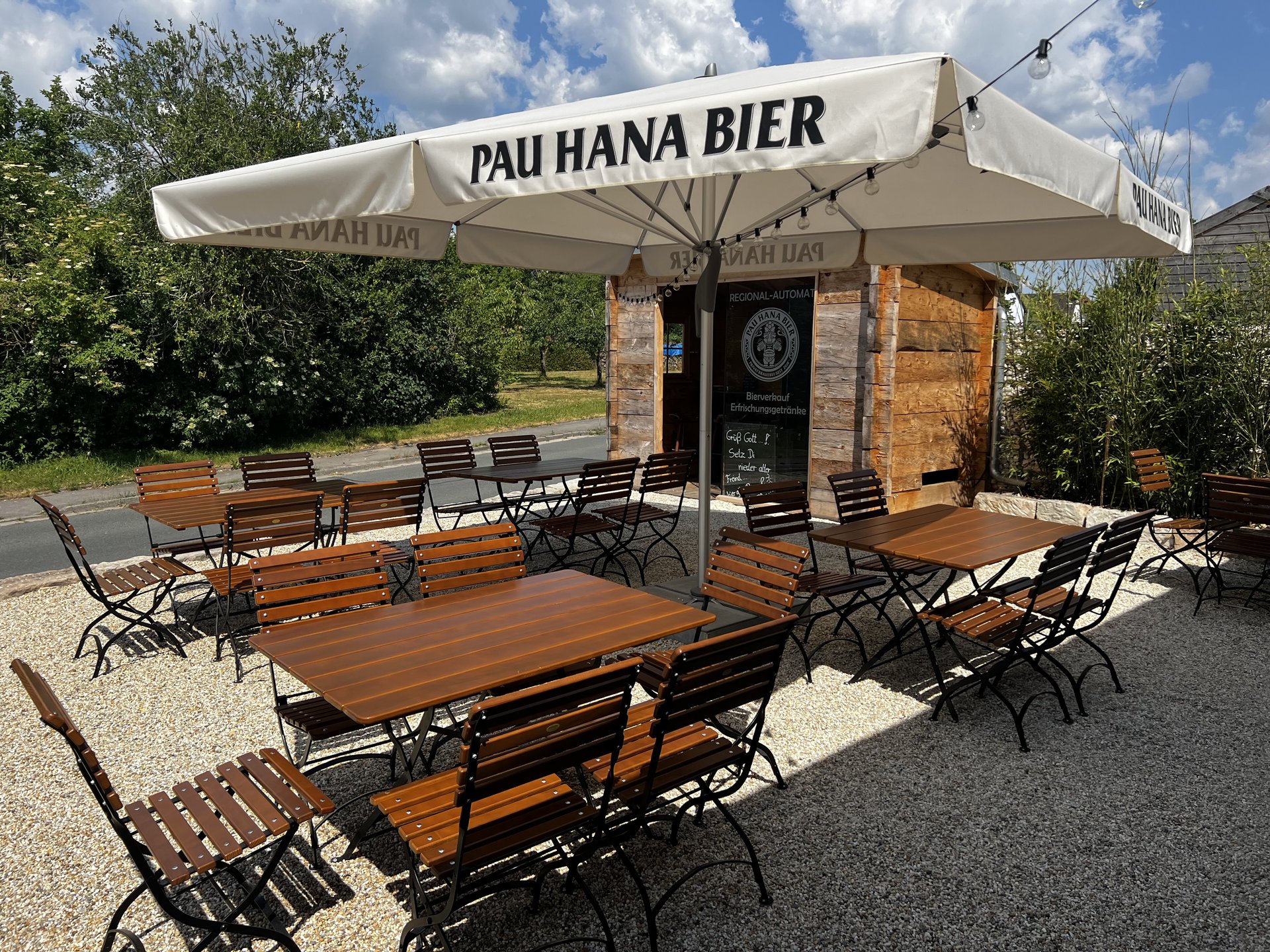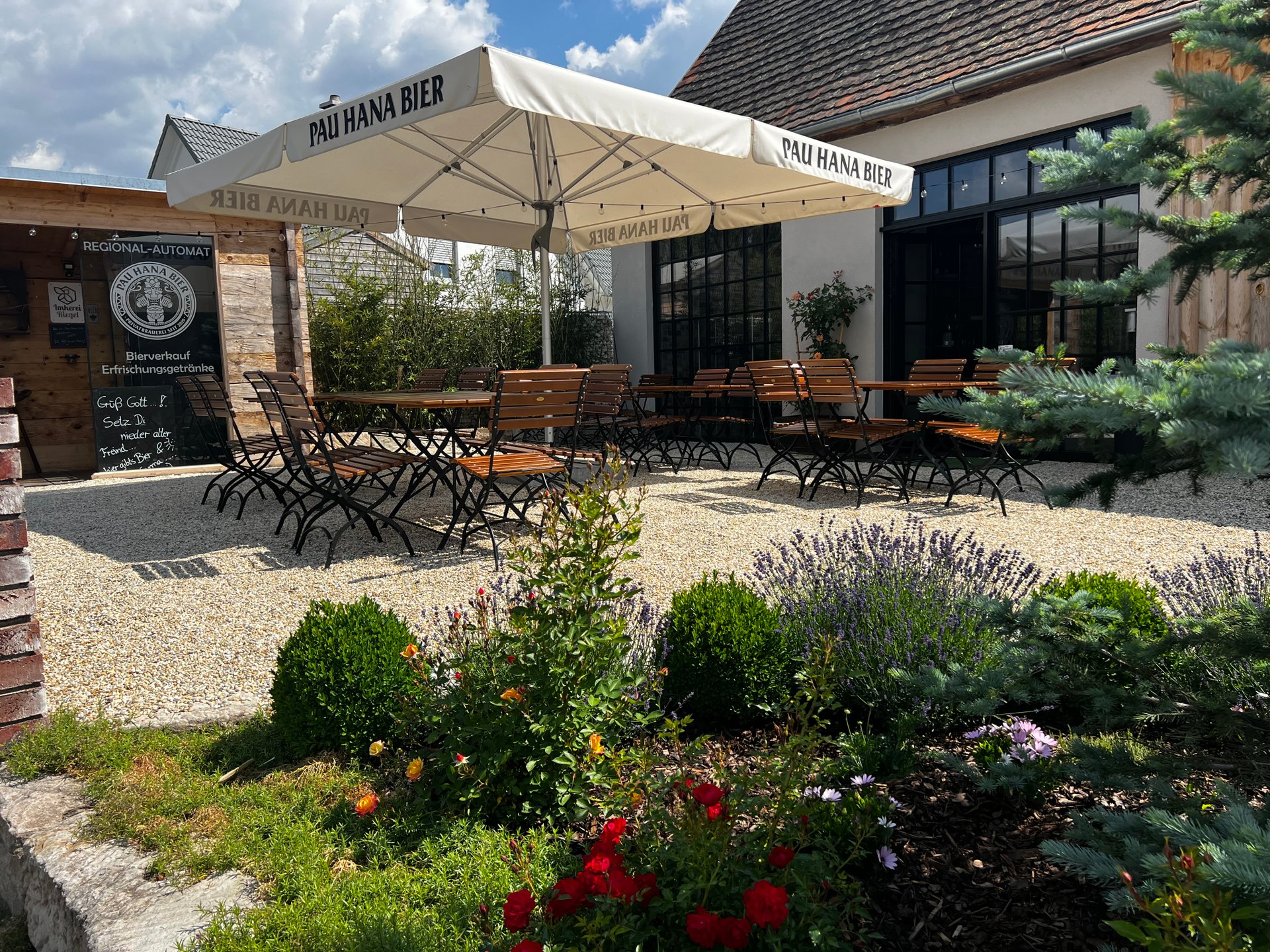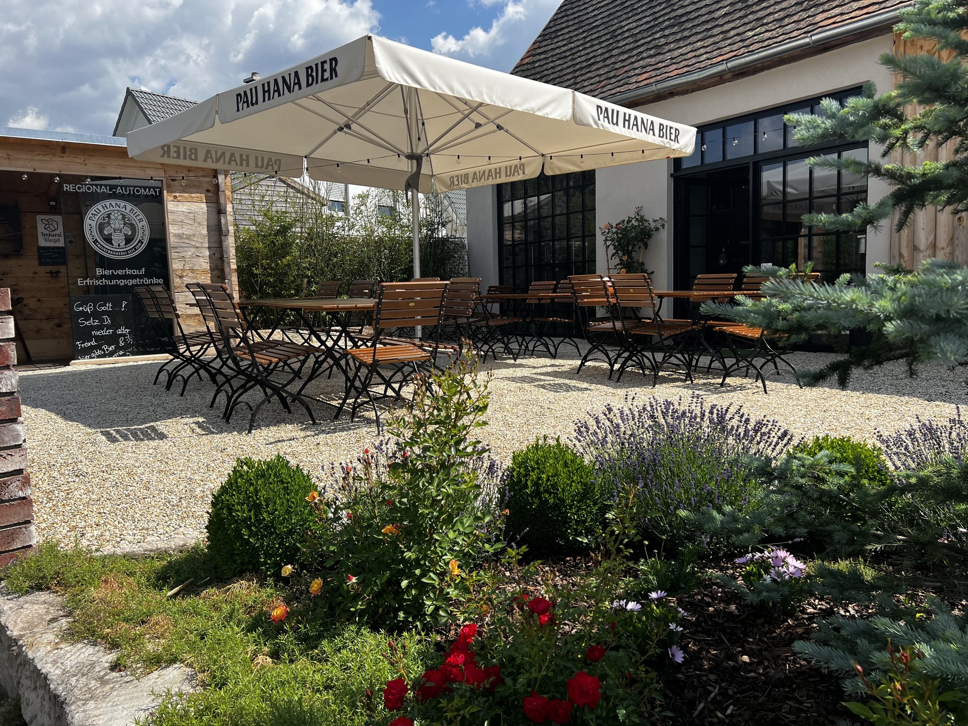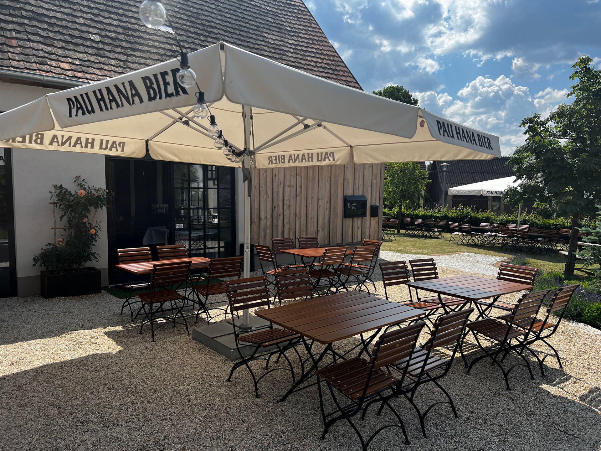 Biergarten-Atmosphäre in Weinberg! Für die perfekte Pause nach einem Spaziergang oder einer Wanderung. Oder eine festlich-gelungene Outdoor-Veranstaltung.